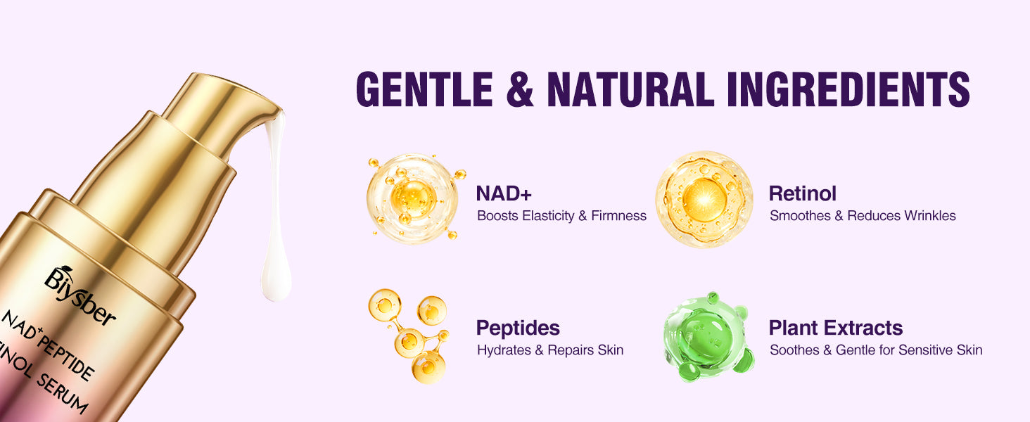 Biysber NAD+ Retinol Collagen Face Serum is a lightweight, fast-absorbing serum designed to help improve the look of skin firmness, hydration, and radiance. Powered by peptides, gentle retinol, and NAD+, it supports smoother, more youthful-looking skin for daily skincare routines.