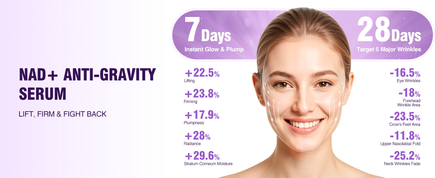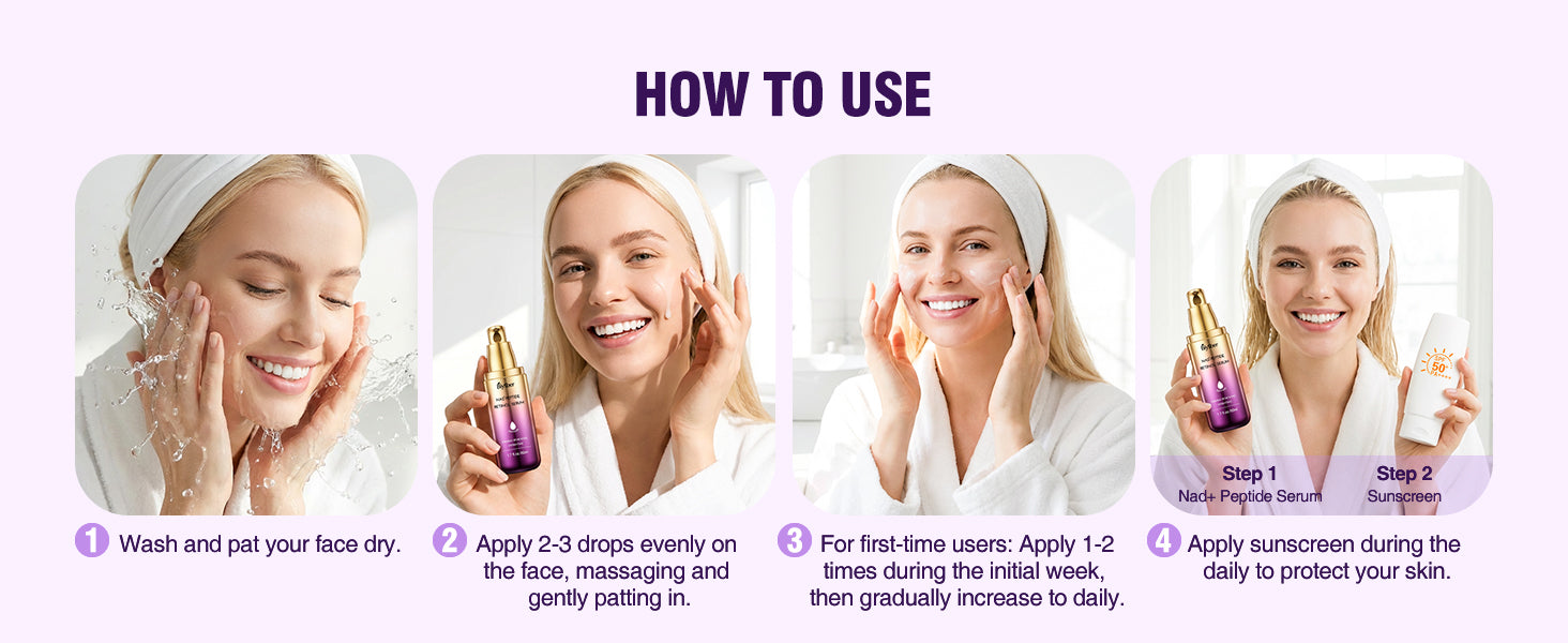 - Formulated with NAD+, collagen, and 6 peptides to support skin elasticity